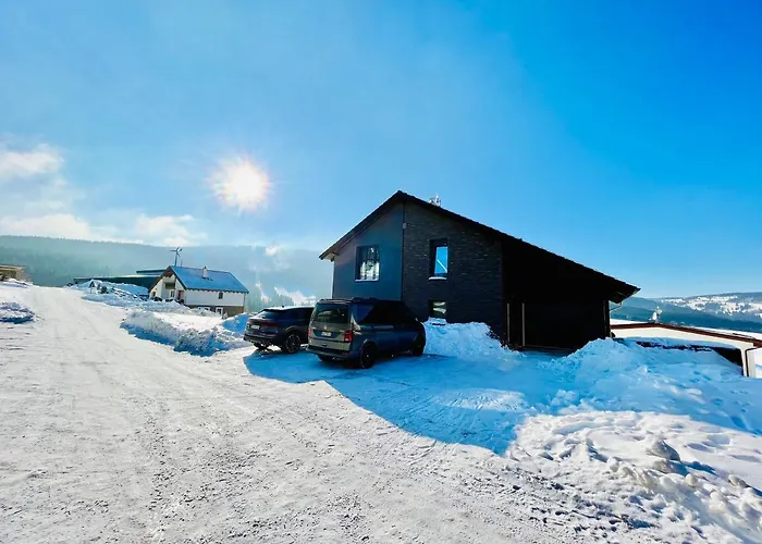이 160m^2 아파트는 카를로비 바리 국제공항 공항에서 45km 떨어져 있습니다. 손님들이 테라스에서 음료를 즐길 수 있으며 식사를 할 수 있습니다. 이 지역은 스노우 서핑, 스키로 유명합니다.
